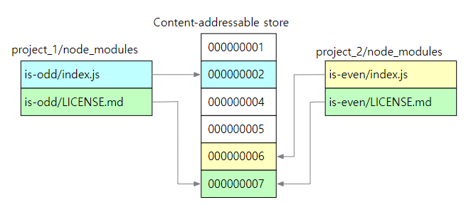 pnpm이란? npm을 사용하여 프로젝트 개발을 하면 사용되는 의존성 모듈들에 따라 각 프로젝트 별 node_modules 디렉토리가 생성된다. 이로 인하여 하드 디스크의 소비가 많이 발생되며 새 프로젝트에서 동일한 패키지를 사용할 경우에도 새로 패키지를 받아야 하므로 설치 시간이 소요된다. pnpm을 사용하게 되면 서로 다른 버전의 종속성 패키지들를 각각 설치하지 않고 새 버전의 파일만 추가적으로 저장소에 저장힌다. 이를 통하여 프로젝트 간 동일 버전의 파일을 공유하여 사용할 수 있으며 종속성이 아무리 많아도 전부 설치하지 않아 디스크 공간이 절약되고 설치 속도가 빨라지게 된다. pnpm 설치 > npm install -g pnpm 디렉토리가 생성된 것을 확인할 수 있음 (필자는 D:\\ 경로에 생성되..